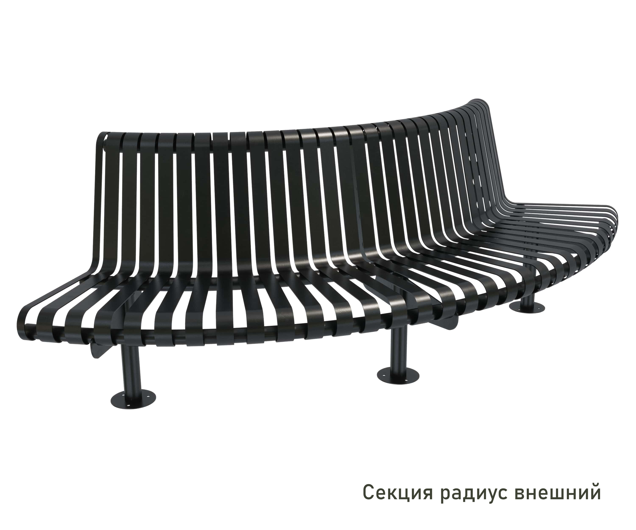 Поставляется в разобранном виде, секциями, которые скрепляются между собой, образуя скамейку любой длины и формы.