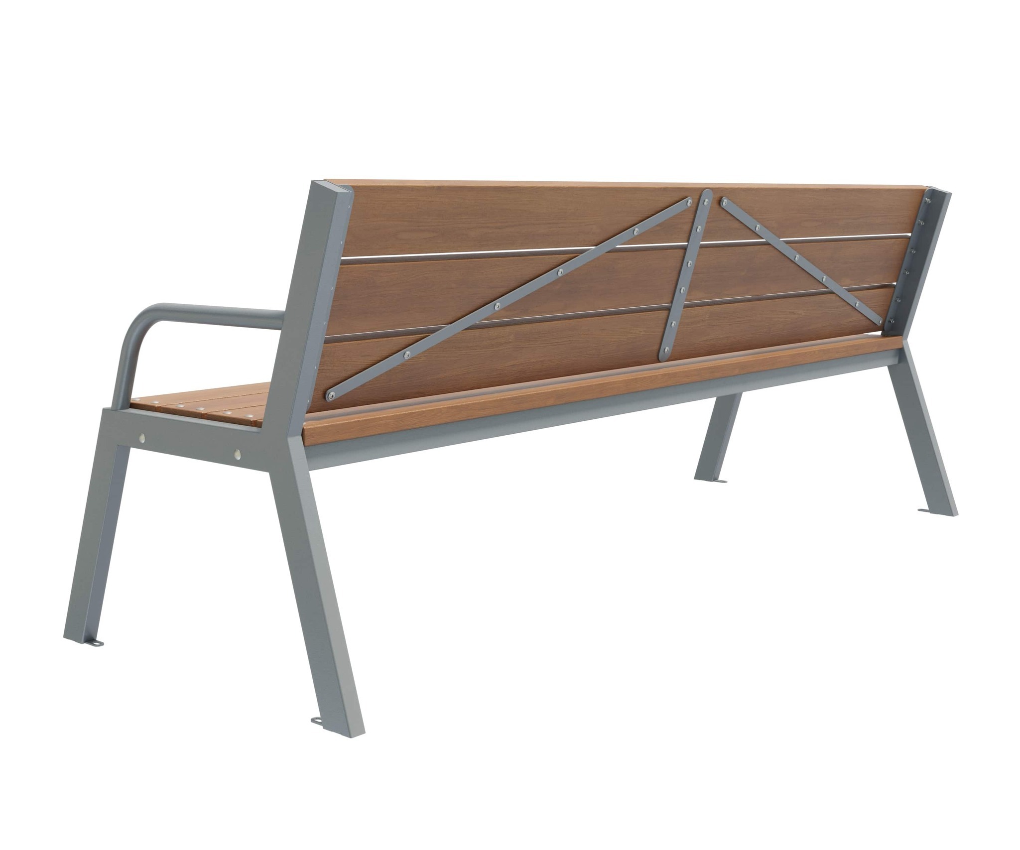 Сиденье и спинка: Брус из хвойных пород древесины. Покрытие - атмосферостойкая лессирующая акриловая пропитка с лаком. Стандартные цвета: Палисандр, Махагон, Тик.