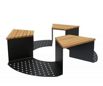 Опоры: Сталь. Покрыты порошковой полимерной краской. Стандартный цвет – чёрный RAL 9005 или серый RAL 7016.Сиденье и спинка: Брус из хвойных пород древесины. Покрытие - атмосферостойкая лессирующая акриловая пропитка с лаком. Стандартные цвета: Палисандр, Махагон, Тик.