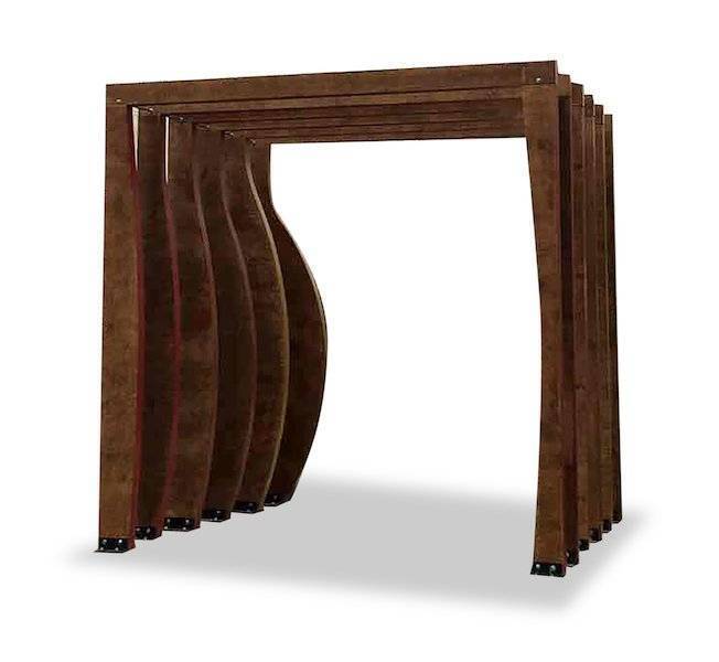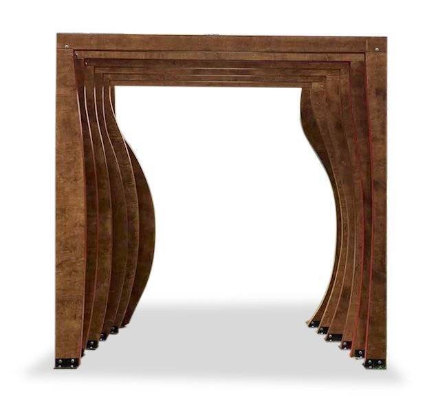 Теневой навес МАФ 2 представляет собой группу из 6 арок. Внешние контуры арок прямолинейные и формируют параллелепипед, а внутренние контуры арок криволинейные, различного профиля, что позволяет создать иллюзию криволинейного туннеля внутри навеса.Материалы: