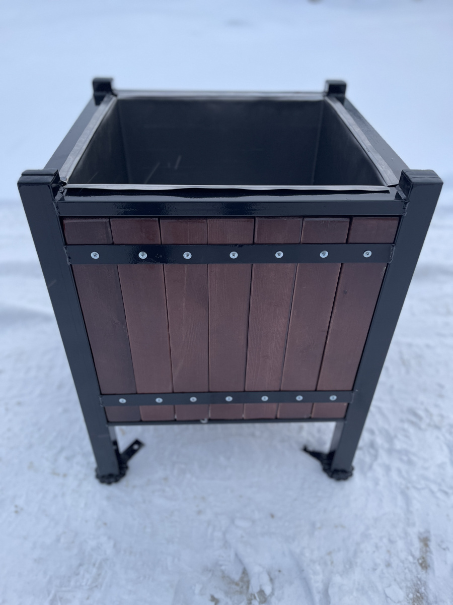 Данная цветочница состоит из вставки под землю и железного основания. При помощи этого очень просто и удобно сажать различного рода растения.
