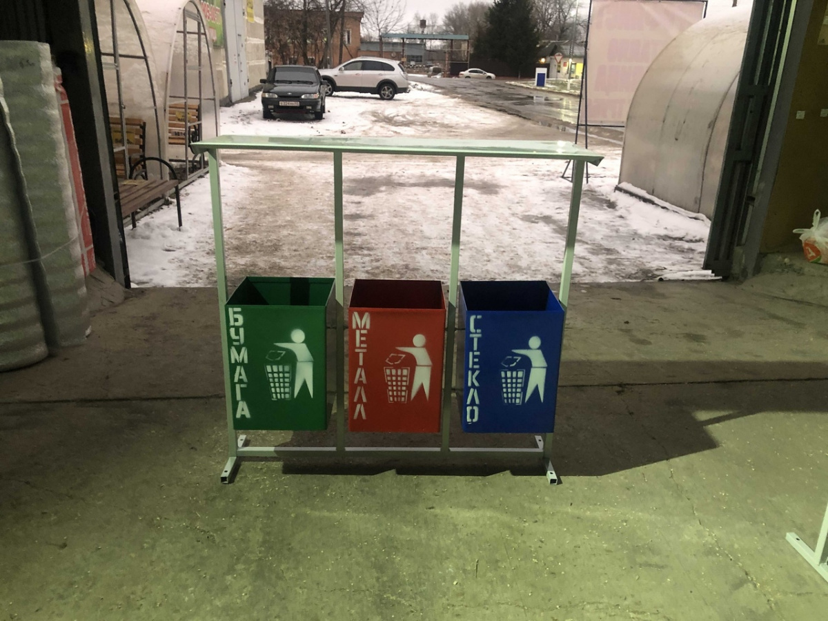 Особенность данной урны в том, что она состоит из трёх баков. Отходы в данном экземпляре делятся на три вида.Поставляется в собранном виде, в стрейч пленке.Также возможно нанесение на урны надписей: -СТЕКЛО -ПЛАСТИК -БУМАГА -МЕТАЛЛ