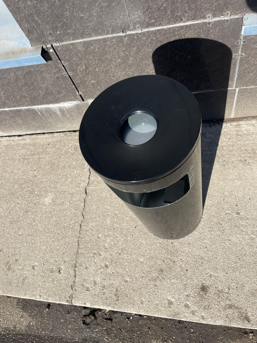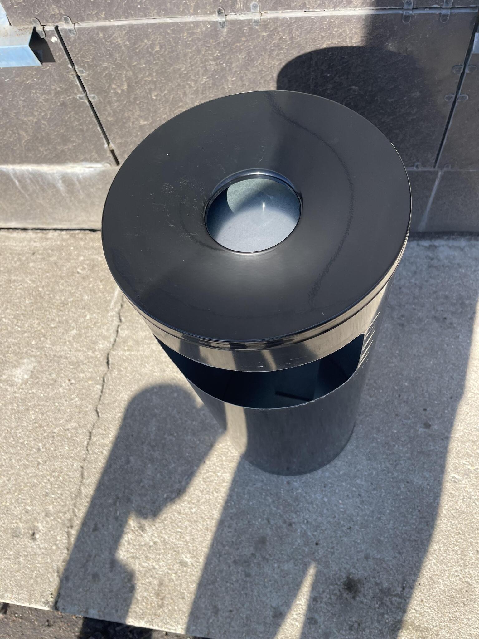 Урна-пепельницаизготовлена из оцинкованной стали с полимерным покрытием, что позволяет использовать как внутри помещений, так и на улице. Урна снабжена верхней крышкой из зеркальной нержавеющей стали, а также алюминиевым горшком, для предотвращения попадания горящих окурков и пепла внутрь урны. Боковое окно урны позволяет бросать более крупный мусор. Поставляется в картонной таре.