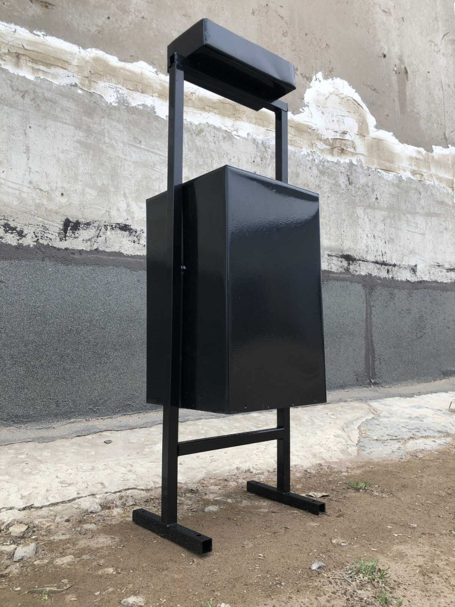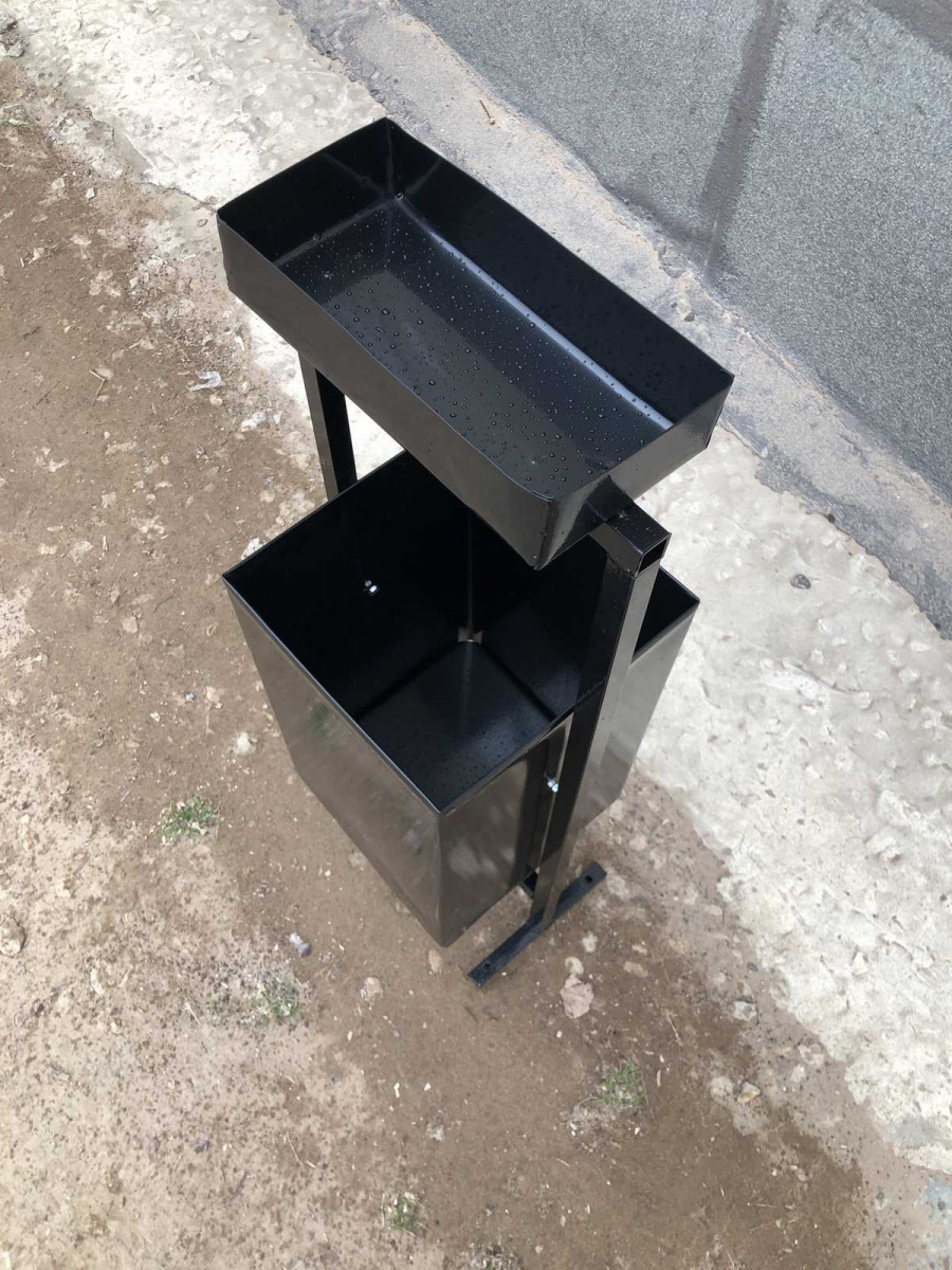 Простая, удобная, бюджетная урна-пепельница. Лучшее соотношение цены и качества.Длина 25 смШирина 30 см.Высота 87 см.Материал бака сталь Х/к 0,6 мм.Материал корпуса квадрат труба 20*20В ножках имеются отверстия 8 мм для анкерное крепления.Окрас-каркас черная глянцевая полиэфирная краска RAL 9005/Окрас бака на выбор- зеленый, красный, синий, серый