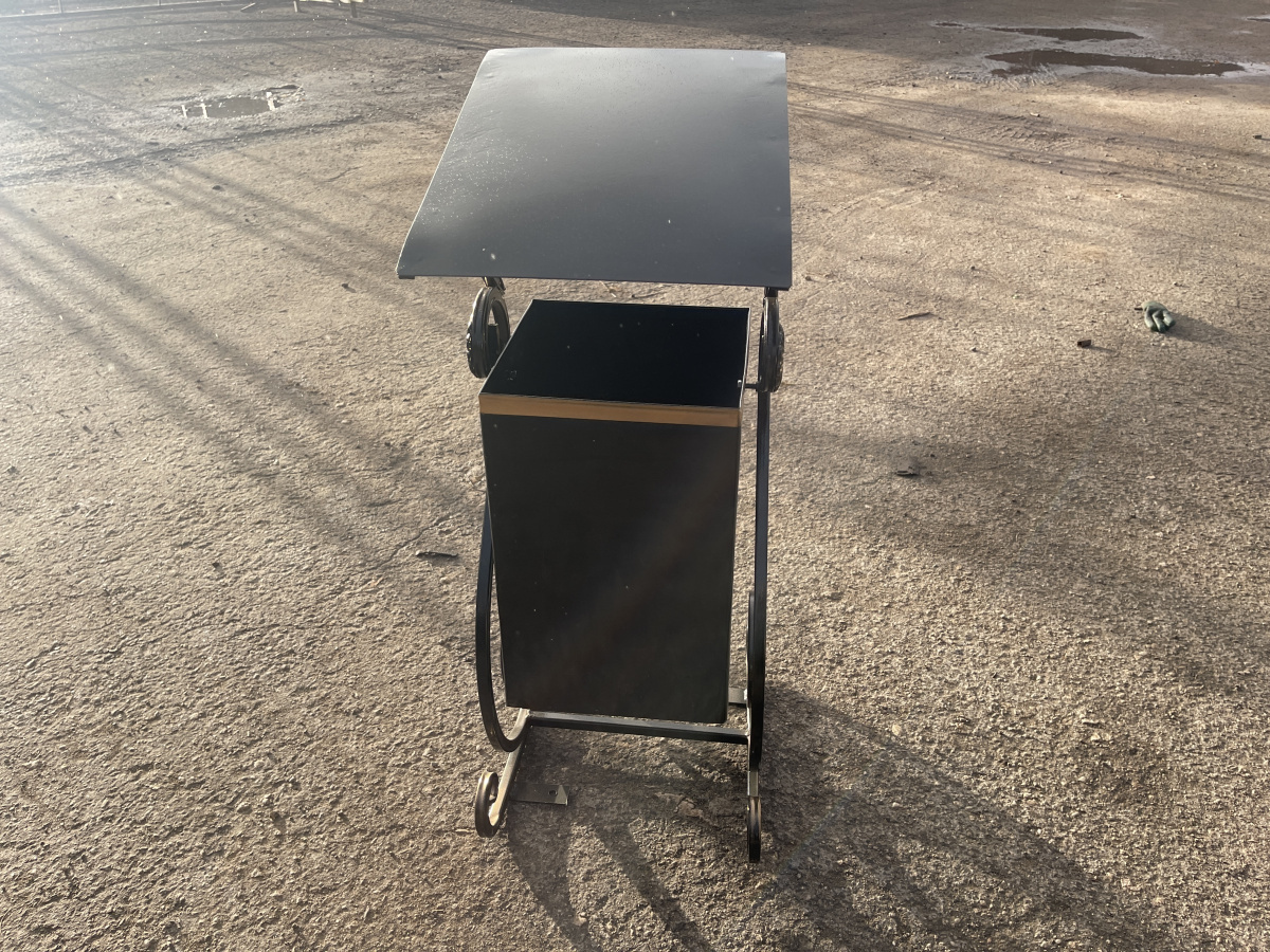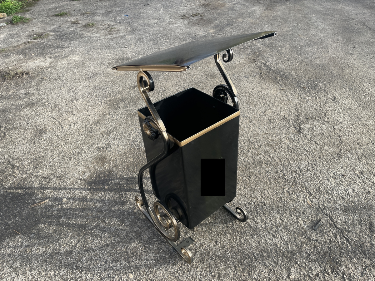 Урна уличная "Дебют" изготовлена методом художественной ковки и художественных элементов. Окрашена черной полиэфирной краской с золотистым напыление.